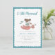 A Little Mermaid is on Her Way Baby Shower Invitation featuring a hand drawn whimsical mermaid. Invitation also features whimsical and modern typography and lovely color palette. Invitation will be part of a Baby Shower Collection.