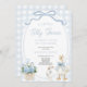Convite A Little Silly Goose Blue Bow Floral Baby Shower