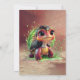A look full of charm and adventure, the cute turtle. It has large, expressive eyes, accentuated by long, curled eyelashes, giving it a charming and lively expression. Its dark shell is decorated with swirling patterns that convey dynamism and playfulness. The turtle's body displays a harmonious blend of warm red and orange tones, radiating warmth and friendliness.