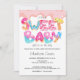 Doce Menina está a caminho - um doce chamado convite para chás de fraldas doce - com texto detalhado e um gelo azul - anúncios de chás de fraldas fofos de Ricaso