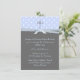 Convite do batismo do bebé à moda feito nas cinzas, com um encabeçamento azul pálido e branco das bolinhas, e gráficos de uma fita dobro azul pálido como uma beira. Os gráficos de uma cruz cinzenta, decoram a área superior do encabeçamento das bolinhas. Luz - o texto azul está pronto para personalizar para ler o que você quer. Convite bonito.