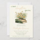 Celebrate the beginning of a beautiful new story with this charming book-themed baby shower invitation. Featuring a delicate arrangement of daisies in a vintage vase resting on a stack of classic books, this design symbolizes the start of a new chapter in life.