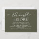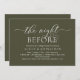 Chamada de Caligrafia Romântica Moderna, tema Verde Oliva Escuro, cartão de convite para jantar de ensaio de casamento (com título do cartão: a noite anterior). É perfeito para a celebração da festa de ensaio de casamento, antes do seu melhor dia. Adicione seus detalhes em fonte / letra preta correspondente.