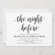 Caligrafia Rústica Moderna, esquema Preto e Branco, cartão de convite para jantar de ensaio de casamento (com título do cartão: a noite anterior). É perfeito para a celebração da sua festa de ensaio de casamento, antes do seu melhor dia. Adicione os seus detalhes.