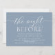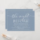 Chamada Caligráfica Romântica Moderna, esquema azul empoeirado, cartão de convite para jantar de ensaio de casamento (com título do cartão: a noite anterior). É perfeito para a celebração do jantar de ensaio de casamento, antes do seu melhor dia. Adicione os detalhes do seu casamento.