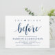Moderno Convite de Jantar de Rehearsal de Casamento com Caligrafia Rústica, esquema Azul-Marinho (com título do cartão: a noite anterior). É perfeito para a celebração do jantar de rehearsal do casamento, antes do seu melhor dia. Adicione seus detalhes.