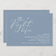 Anuncie a sua alegria para sempre em estilo com o nosso moderno e empoeirado design do tema azul (A Noite Antes, com pouco coração) convite para comemoração de casamento. É ideal para casais que decidiram celebrar a noite antes do seu grande dia. Com seu design sofisticado, mas lúdico, este convite certamente define o tom de um evento inesquecível. A carta de convite apresenta o moderno design de roteiro romântico, adicionando um toque de elegância do eterno à sua celebração. Projetado por TeeshaDerrick