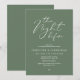 Anuncie a sua alegria para sempre em estilo com a nossa moderna estética design verde-tema do ensaio de casamento (A Noite Antes). É ideal para casais que decidiram celebrar a noite antes do seu grande dia. Com seu design sofisticado, mas lúdico, este convite certamente define o tom de um evento inesquecível. A carta de convite apresenta o moderno design de roteiro romântico, adicionando um toque de elegância do eterno à sua celebração. Projetado por TeeshaDerrick