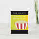 Um design divertido com uma grande tigela vermelha e branca de pipoca-da-manteiga em um fundo amarelo sombreado. Personalize com sua mensagem conforme desejado.