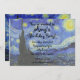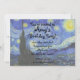 modelo de convite de aniversário com a noite estrelada de Van Gogh com estrelas, lua, aldeia em lindas cores azul e amarela