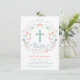 Este convite para comemoração de Páscoa colorida apresenta uma coroa floral ilustrada em cores pastel e primavera ao redor de uma cruz. Ela pode ser facilmente personalizada para um almoço de Páscoa, caça aos ovos, ou qualquer celebração para este dia especial na religião cristã.