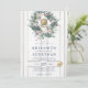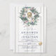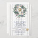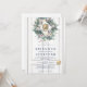 Convidado russo para a porta de casamento branca com coroa floral, e texto branco. Um design bonito e divertido para um verão, jardim ou casamento rústico.