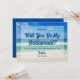 Este lindo casamento de praia Will You Be My Bridesmaid apresenta uma linda foto das ondas do oceano para um casamento de destino. Fotografia de praia bonito, combinada com elegante tipografia azul, cria um cartão de festas chic e moderno para um evento em ilha tropical.