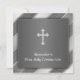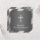 Brisas diagonais brancas, prateadas e pretas elegantes com o primeiro convite de comunhão sagrado de um cruz branco.