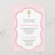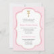 Batismo ou convite da Santa Comunhão com design com cruz coroada e bebezinho rosa e borda dourada.