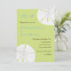 Estes convites ocasionais do casamento são perfeitos para seu praia ou casamento do destino. Os convites caracterizam dois dólares de areia em um fundo verde dos tiros da proposta. O texto está no azul castanho chocolate e do crepúsculo. Preencha sua informação usando o modelo. O clique "personaliza-o" para fazer mudanças à colocação da pia batismal e do texto.