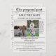 O casamento de um jornal de posto de propostas minimalista salva a data com três fotos, foto do noivo e da noiva quando eram crianças e quando eram adultos.