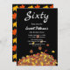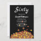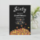 Este convite de aniversário de outono moderno apresenta folhas de outono simples com tipografia branca elegante, colocadas contra um fundo negro ousado.