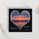 Procurando um convite romântico para a recepção de casamento de posto? Este convite para a recepção de casamento de posto tem romance escrito por todo o lado. Um coração é o ponto focal do convite e não qualquer coração, mas um coração com um dentro de pôr do sol! O coração do pôr do sol está borrado em branco e aparece sobre um fundo preto. Na parte inferior (à esquerda do coração) está a palavra "Recepção" e (à direita do coração) estão os nomes do casal de casamento. No verso do convite de recepção estão os nomes pré-casamento da noiva e do noivo e a data e localização do casamento. Além disso, o convite convida-o a juntar-se ao novo Sr. & Sra. em comemoração ao seu casamento. Um adorável, romântico convite à recepção de casamento de posto. Direitos autorais