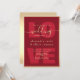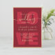 Este convite ousado e moderno para a recepção de casamento apresenta um fundo vermelho impressionante com caligrafia minimalista e grande tipografia LOVE no fundo. Junto com uma elegante fronteira dourada e opções contemporâneas de fontes, esta design é perfeita para comemorações de na moda após a cerimônia ou recepções românticas à noite com uma vibração minimalista.