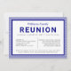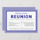 O convite para a reunião da família de stripe azul moderno. Listras de curvas azuis de marinho estreito em branco, dada uma vibração moderna. Os detalhes da sua reunião familiar são colocados em um retângulo branco com uma grande fronteira azul marinho. Seu nome de família e reunião estão escritos em grande texto azul marinho. Personalize os detalhes da reunião familiar abaixo. O padrão de faixa azul do marinho cobrir a parte de trás do convite