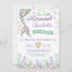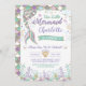 Convite de aniversário para o tema da sereia Whimsical com uma cauda de sereia e criaturas submarinas, corais e folhagem
