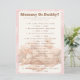 This printable game card features the heartwarming and humorous watercolor illustration of the exhausted mother goose napping while her wide-awake baby silly goose looks on, perfectly capturing the funny, relatable side of new parenthood. This "Mommy or Daddy" guessing game invites guests to predict which parent said what and will do with the baby, creating laughter and sweet predictions.