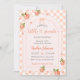 Welcome your little princess or prince in style with our sweet little peach baby shower invitation. This invitation features watercolor peaches and blossoms on a light peach gingham background. The perfect theme for a gender-neutral, peach spring or summer-inspired baby shower.