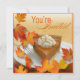 A queda das folhas de outono fornece um pano de fundo bonito para esta saborosa fatia de torta de abóbora com espinhos de canela sobre creme chicoteado - yum! Convite personalizável para o Janto de Ação de Graças. Para obter ajuda ou perguntas, envie um e-mail para mim: cheryl@cheryldanielsart.com/contact. Cheryl Daniels © 2013.
