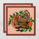 O convite de Ação de Graças ilustrou o peru que estava de pé em uma abóbora com vinha.