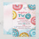A vibrant 2nd birthday invitation with donuts. Celebrate your little one's second birthday in style and style! This sweet and colorful invitation, featuring colorful donuts and sprinkles, is perfect for a "Two Sweet"-themed children's party. The design is modern and fun, instantly uplifting the mood and creating a festive atmosphere.