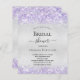 Um chá de panela moderno e elegante. Fundo metálico de aspecto fino prateado decorado com brilho de cor violeta, lavanda, faíscas. Personalize e adicione um nome e detalhes da parte. Letras pretas coloridas.