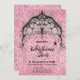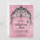 Este Convite para Festas de Halloween apresenta uma teia de aranha preta assustadora num fundo de damasco rosa. Você pode personalizar com os detalhes do evento.