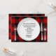 Placa branca de janto com prato de prata em xadrez de búfalos preto e vermelho para qualquer convite à festa de janto de aniversário. O design pode ser usado para qualquer aniversário de idade.