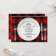 Placa branca de janto com prato de prata em xadrez de búfalos preto e vermelho para qualquer convite à festa de janto de aniversário. O design pode ser usado para qualquer aniversário de idade.