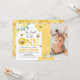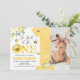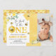 Yellow One Floral Honey Bee First Bee day Birthday Convite para o Aniversário Doce Bonito ou Abelha foi temido no primeiro convite de aniversário para uma menina com arranjos florais majoritariamente amarelos e cinco abelhas bonitinhas, uma grande aquarela amarela e uma área para sua foto de meninas.