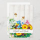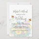Um buquê floral rústico com abelhas e anéis de ouro dá ao convite de casamento personalizado um tema sustentável. O ouro do carregando das abelhas toca em um fundo texturizado de madeira. Mude facilmente as informações para o seu design de casamento personalizado.