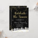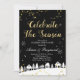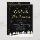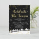Celebre a Estação! Convite à casa aberta de Natal com fundo de quadro negro e sotaque de ouro