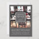 Este grande convite de abertura do restaurante elegante apresenta uma simples cinza de carvão e design branco, e inclui a fotografia do restaurante e o nome do negócio. Essa design moderna e mínima também inclui detalhes como o endereço do restaurante e informações de rsvp.