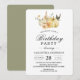 Celebre com estilo sazonal com este encantador convite de festa de aniversário com tema de outono! Com belas abóboras pintadas à mão em aquarela, delicadas flores de outono e folhagens rústicas em tons suaves e neutros, este design é perfeito para reuniões de aniversário aconchegantes em setembro, outubro ou novembro.