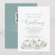 Convite Abóboras Brancas Código QR Folhagem Azul Casamento