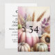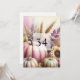 Convite de festa de aniversário de texto de caligrafia minimalista com um fundo de aquarela de folhas de outono e abóboras de outono em cores de outono neutras.