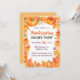 Este belo convite editável apresenta os detalhes do evento rodeados por uma moldura de abóboras laranjas e folhas de outono. No verso, há um campo editável para informações adicionais. O texto em ambos os lados é editável, então vá em frente e altere os detalhes, bem como o tamanho, estilo e cor da fonte. A cor do fundo no verso também pode ser alterada. Este convite pode ser usado para o Dia de Ação de Graças ou qualquer evento de outono!