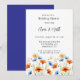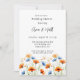 Uma delicada pintura aquosa com flores silvestres laranja vibrantes e azul macio. O arranjo floral apresenta pinceladas intrincadas, misturando tons quentes e legal para uma composição harmoniosa e inspirada na natureza. Perfeito para amantes de arte botânica, e Casamentos.