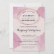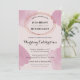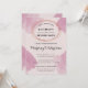 Cartões de casamento modernos e simples e minimalistas para sua ocasião especial! Apresentando uma estrutura de círculo geométrica ao redor do nome da noiva e do noivo com borda abstrata de pincel de aquarela rosa suave em fundo rosa escuro. Personalize seus detalhes de casamento, data, local e muito mais na frente.