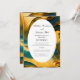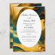 Convite Abstrato de Casamento Ouro Teal Elegante Moderno