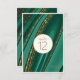 Este conjunto de design de casamento, com seu padrão abstrato de ondulações e veias fluentes de ouro reluzente, traz à mente formações rochosas atraentes e gemas cintilantes. A paleta colorida em tons joias em tons de verde esmeralda aumenta o apelo. A placa de número da tabela de coordenação mostrada aqui tem todas as informações acima com um rótulo branco para adicionar os números da tabela. Adicione facilmente seus nomes, números e data de casamento usando o modelo fornecido. Procure ID903 para ver outras opções de cores e peças de coordenação para esta coleção de casamento única.