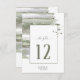 Uma pintura trava aquarela em tons cintilantes de verde-oliva com salpicos de lavanda acentua as peças desta bela suíte de casamento. A carta de número da mesa de casamento mostrada aqui também apresenta uma caligrafia manuscrita elegante e uma modelo para adicionar facilmente seus próprios nomes e data de casamento. Procure ID886 para ver outras peças e opções de cores para este conjunto.