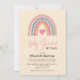 Um adorável convite de chá de fraldas perfeito para uma menina. Este convite de chá de fraldas está configurado para ser usado para um evento de chá por email. O design apresenta um arco-íris fofo em tons de rosa, cor-de-rosa e ouro acentuados com um coração cor-de-rosa.