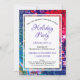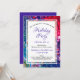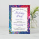 Na moda, convite de festas moderno em púrpura, vermelha, azul e lilases. O reverso tem um padrão sutil dizendo FÉRIAS FELIZES. O texto do marcador de posição é personalizável, portanto, simplesmente adicione seu nome e detalhes. Papel de papelaria e presentes disponíveis na Coleção CHRISTMAS STARS por Designs Berean. Também vem em GREEN.